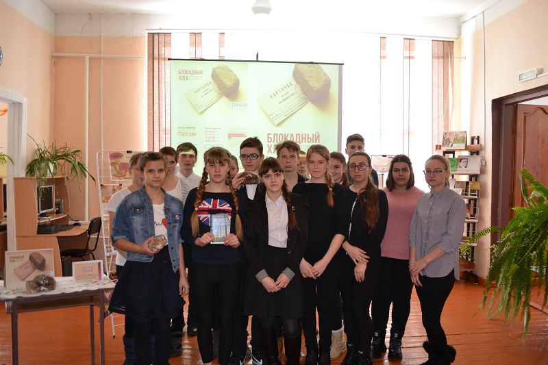 По окончании мероприятия старшеклассники ознакомились с книжно-иллюстративной выставкой «Героический Ленинград – героические люди» на выставке представлено письмо неизвестной жительницы нашего села, которая является очевидцем пережившим блокаду, классы получили хлеб весом 250 гр., который они разделили в школе между учениками в знак памяти. Присутствовало 36 человек