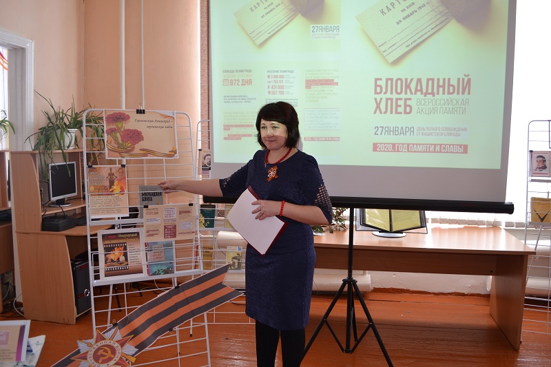 С 18 по 27 января во всех регионах нашей страны проводится Всероссийская Акция памяти «Блокадный хлеб», которая дает старт Году памяти и славы. Петровская сельская библиотека присоединилась к Акции «Блокадный хлеб». 27 января отмечалась 76-я годовщина полного освобождения города-героя Ленинграда от фашистской блокады. Информационный час  мужества и патриотизма «Снятия блокады города Ленинграда», посвящённый этому событию, прошёл для старшеклассников в Петровской сельской библиотеке. Во время мероприятия учащиеся 8 и 9-го классов познакомились с одной из трагических страниц в истории Великой Отечественной войны 1941–1945 годов. Рассказ зав.библ Заельской Ж.А. о страшных днях осаждённого врагом города и о проявленном героизме наших соотечественников сопровождался показом слайдов.