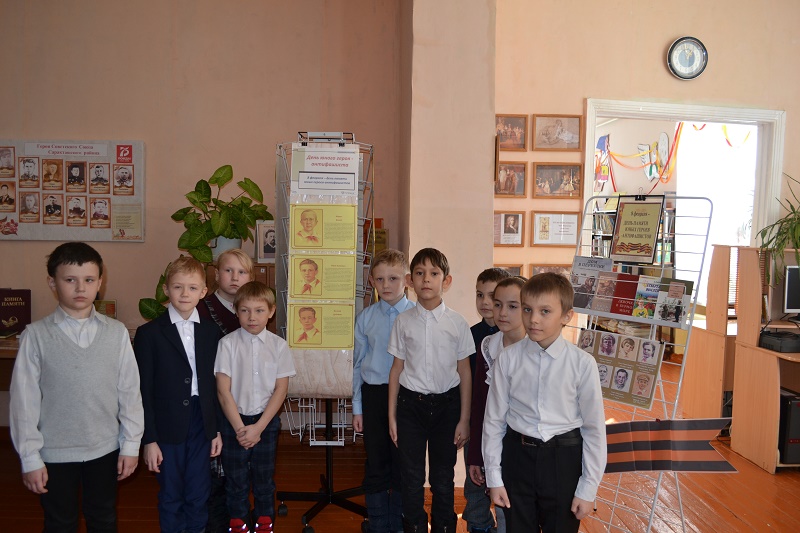 5 февраля 2020 года Петровская сельская библиотека пригласила учащихся 2 класса на урок мужества «Маленькие герои большой войны», посвящённый юным героям-антифашистам. Детям было рассказано о том, что 8 февраля - это День памяти юных мальчишек и девчонок всех стран, кто боролся и умирал за свободу, равенство и счастье людей. Видео презентация «С чего начинается подвиг…» поведала школьникам о пионерах-героях. О том, как они бесстрашно и гордо шагнули в зарево войны, в грохот канонады, шагнули и не вернулись. Ребята узнали о героических биографиях детей, которым было присвоено высокое звание Героя Советского Союза. С большим интересом второклассники посмотрели видеоролик о пионерах-героях «Нам память о них дорога бесконечно…». Был проведен обзор у выставки «Маленькие герои большой войны».